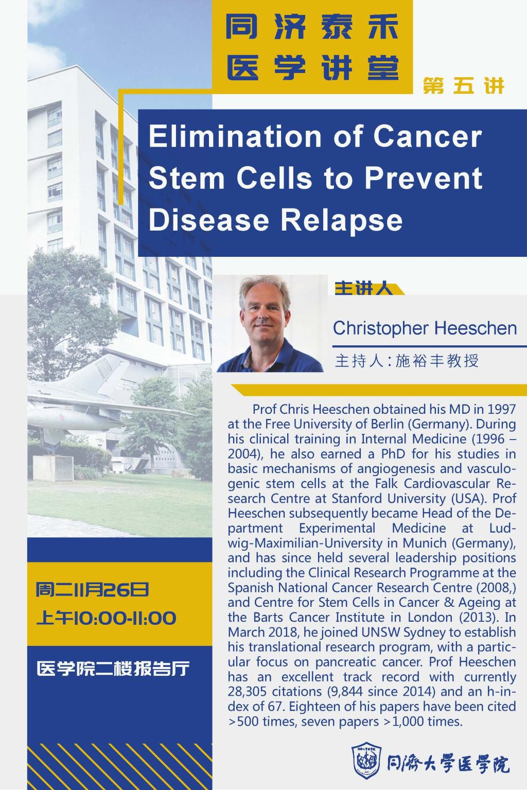泰禾医学讲堂第5讲:Elimination of cancer stem cells to prevent disease relapse