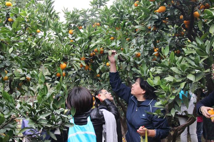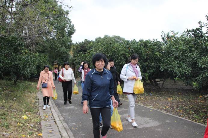 经过院工会委员们的精心设计,健步走的终点是一片桔园,让老师们在辛苦的锻炼之后迎来收获的喜悦。正值深秋,树上的橘子硕大而繁密,似乎早已迫不及待的等着大家的采摘,老师们互帮互助,欢声笑语弥漫着这个桔园。经过细心的采摘,每位老师都拎着自己辛苦采摘下来的橘子,脸上充满了喜悦和满足。