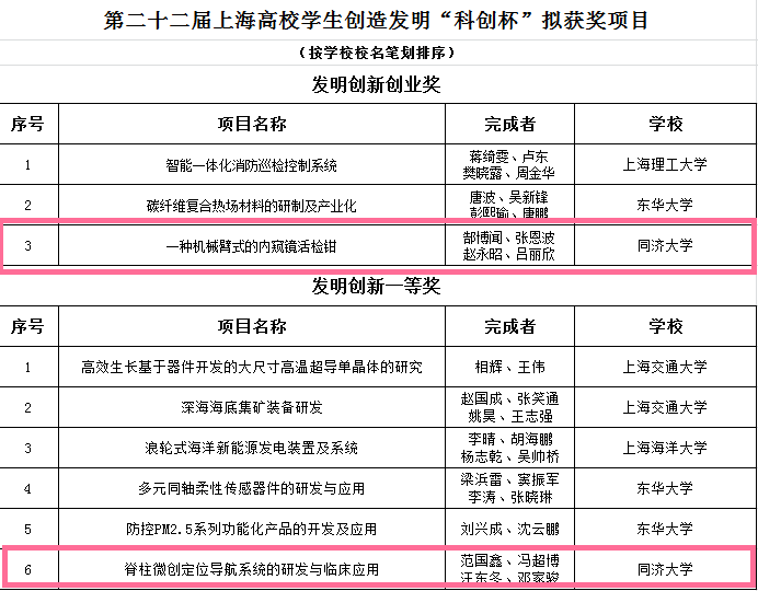 今年会官网入口范国鑫、冯超博、汪东冬、邓家骏学生团队的《脊柱微创定位导航系统的研发与临床应用》获发明创新一等奖,得到了评委导师们的称赞和嘉奖。我院学生在上海市规模的比赛中频频获奖,这不仅表现出我院学生对知识的渴求、对科研的创新,更体现出学生的创业能力和团队协作意识。
