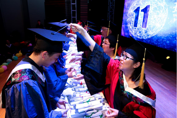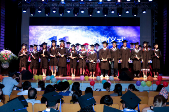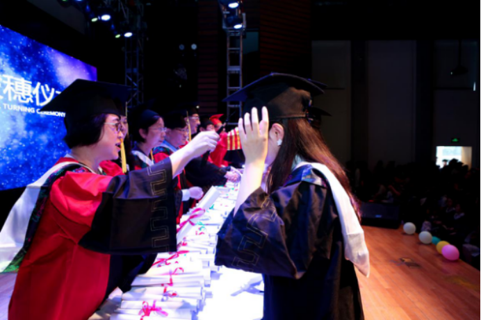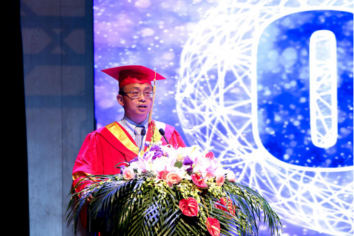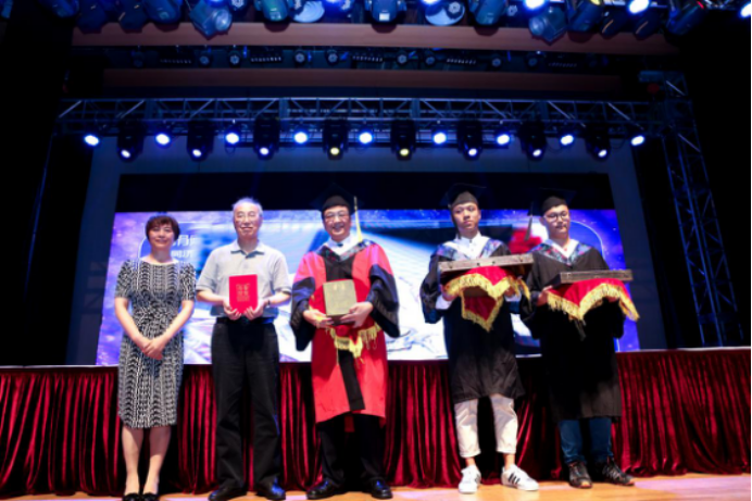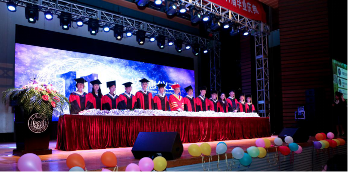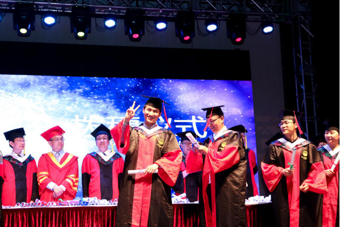 典礼进行到最关键的一个环节,郑加麟院长上台宣读授予学位的近七百名学生名单,并邀请张军教授、章小清教授、杨文卓教授、李觉教授、梁兴群教授、于靖教授、许树长教授、花艳教授、余晨教授、李钦传教授、万小平教授、于德华教授、翟华教授上台等为他们拨穗正冠,颁发卷轴并合影留念。