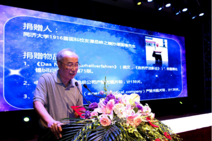 今天,谭国璋教授来到了现场,并带来了谭岳峰先生生前使用过部分老物件,赠送给今年会官网入口。三件物品分别是:德国莱比锡bilz出版社1902年出版的百万册纪念版《Das Neue Naturheilverfahren》(德文,《自然疗法新论》);中国大明制造眼镜总公司产验光镜片箱,计159片;美国光学仪器公司(american optical company)产验光镜片箱,计139片。今年会官网入口书记张军教授上台接受捐赠,档案馆馆长慎金花教授为谭国璋教授颁发捐赠证书。