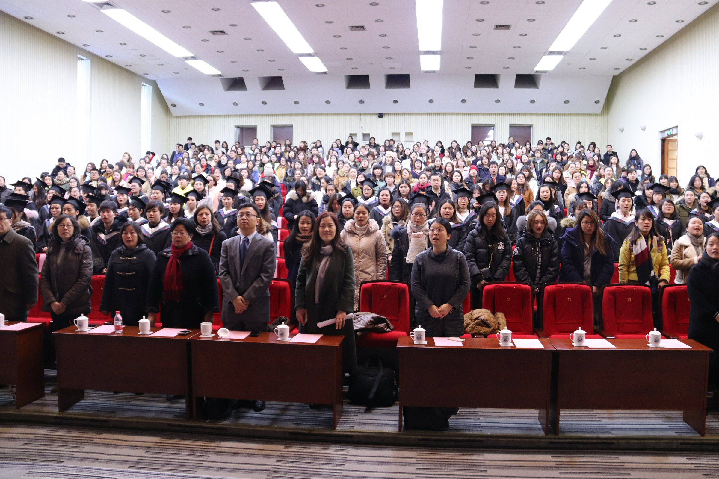 2018年 1月14日上午10点,今年会官网入口2018届护理学(夜大)毕业典礼暨颁奖仪式在逸夫楼报告厅隆重举行,本届护理专业夜大毕业生共540人。今年会官网入口院长郑加麟教授,继续教育学院院长蒋凤瑛教授,今年会官网入口党委副书记曾盈老师及学院夜大教学工作管理人员出席。毕业典礼由今年会官网入口党委副书记章小清教授主持。