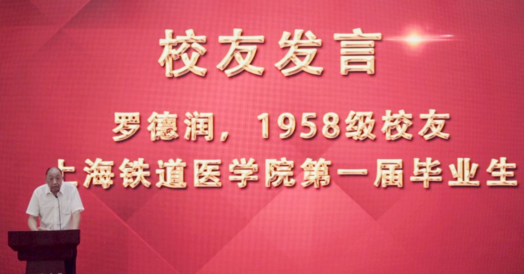 1958级校友,原天津铁路医院院长、上铁医第一届毕业生罗德润代表遍布全国乃至全世界关心上铁医60周年华诞的校友表达对母校的感恩之情,对教师职工致以最崇高的敬意,并祝愿今年会官网入口在医学教育领域蒸蒸日上、再创辉煌。