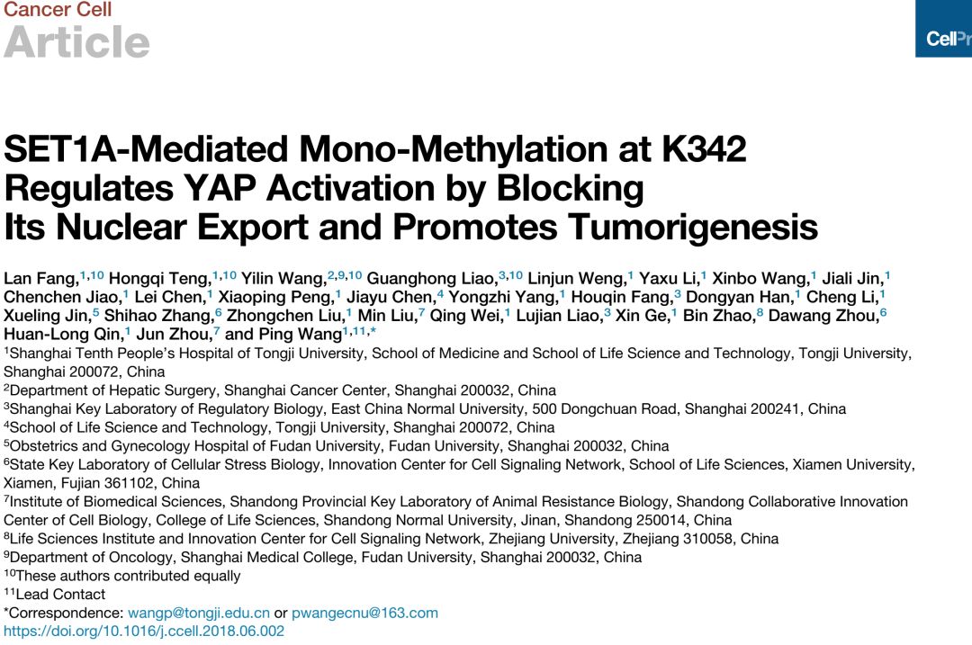 今年会官网入口王平教授长期研究肿瘤微环境对关键信号通路蛋白翻译后修饰的调节分子机制,对TOR、NFkB等通路的调节机制提出了新见解。6月29日最新一期Cancer Cell杂志在线发表了王平教授团队题为SET1A-mediated mono-methylation at K342 regulates YAP activation by blocking its nuclear export and promotes tumorigenesis的研究论文,从蛋白质翻译后修饰的角度阐明了Hippo通路调控的新机制及其在肿瘤发生发展中的作用。