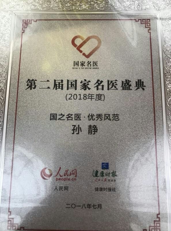 孙静副教授获得“国之名医·优秀风范”称号