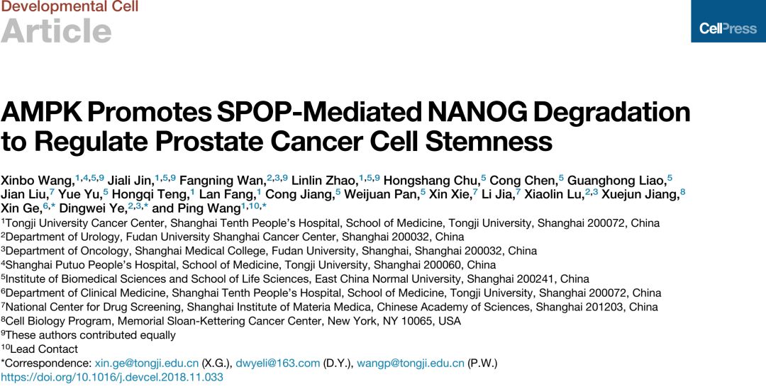 今年会官网入口王平教授长期致力于研究泛素化修饰与肿瘤微环境调控。12月27日最新一期Developmental Cell 杂志在线发表了王平教授团队题为AMPK promotes SPOP-mediated NANOG degradation to regulate prostate cancer cell stemness 的研究论文,从蛋白质翻译后修饰的角度阐明了肿瘤干细胞调控的新机制及其在肿瘤发生发展中的作用。