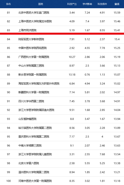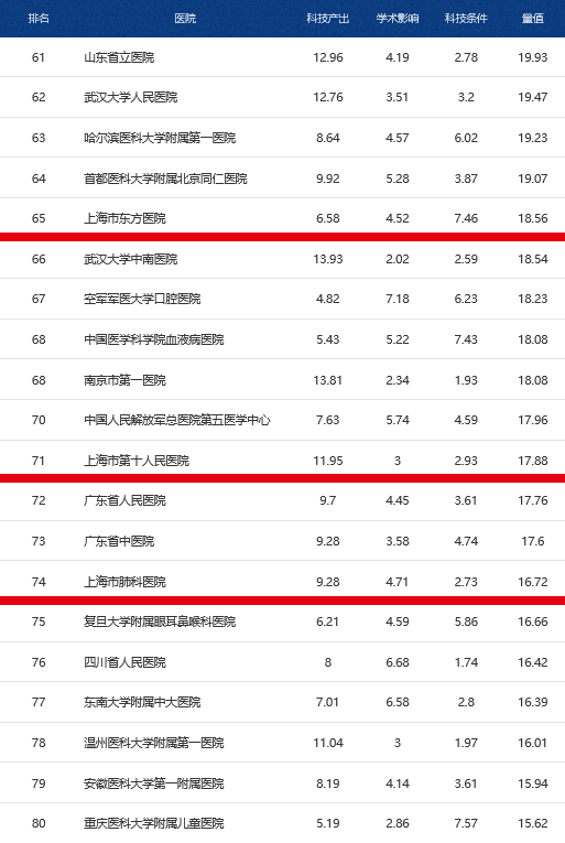 中国医学科学院已连续5年进行医院科技能力评价并发布报告。今年的排名共对我国1660家三级医院开展研究。评价结果分为两部分,一是综合科技量值;二是学科科技量值,涵盖心血管病学、呼吸病学等共29个临床医学二级学科及部分三级学科。