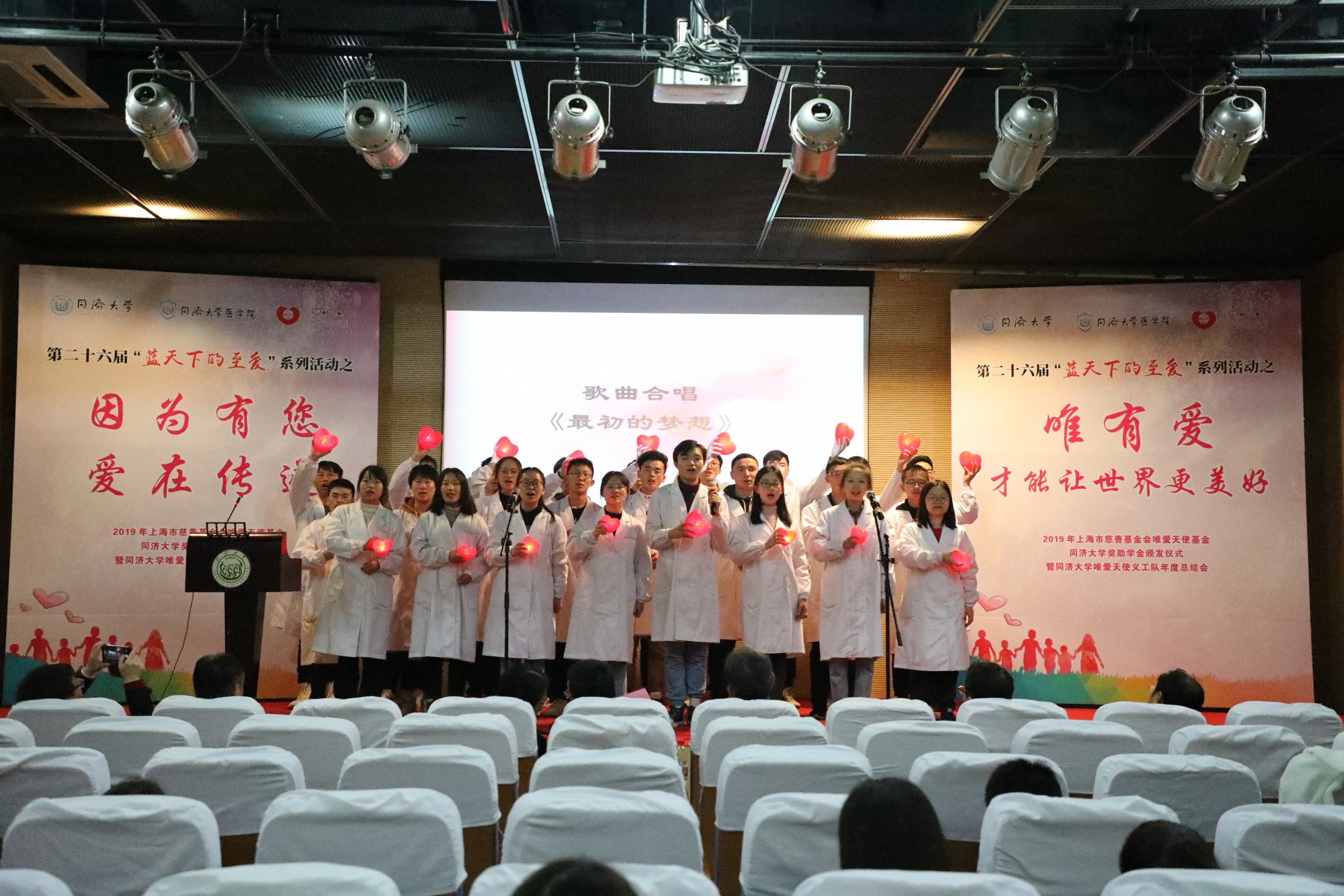 随后受助学生共同演唱了一首《最初的梦想》,在温暖的旋律中表达了他们的感激之情,以及不忘初心、行医济世、勇敢追梦的的志向。他们的精彩表演赢得了阵阵掌声。