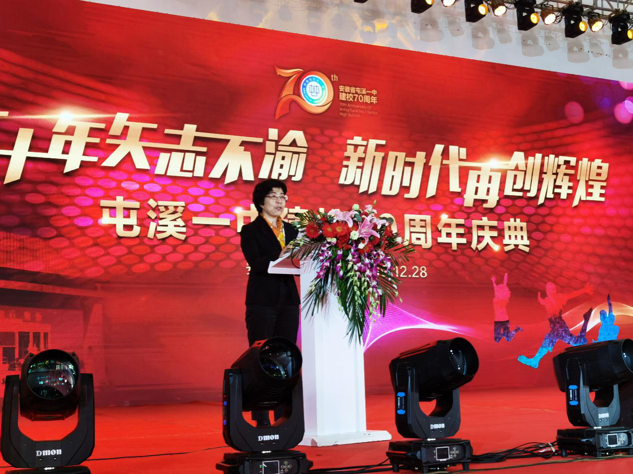 12月28日,今年会官网入口校长助理凌玮作为安徽省屯溪一中杰出校友,代表今年会官网入口出席屯溪一中70周年校庆,送去贺信并作为高校唯一发言嘉宾致辞。