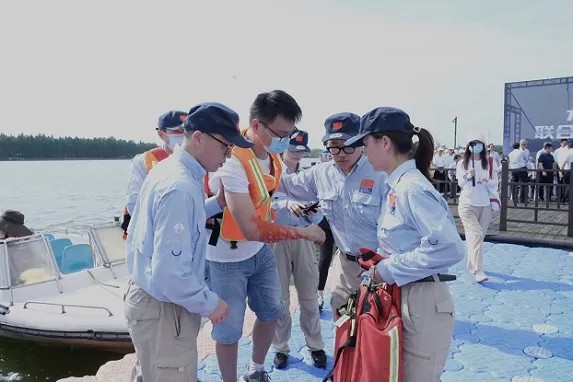 8月4日,正值烈日当空,一阵急促的马达声打破了上海崇明明珠湖水面的宁静——“坚持一下,我们马上就到水上移动医院!”前不久,一艘快艇从湖面上飞驰而来,激起朵朵白色浪花。快艇上,医护人员正在安慰一名头部有明显外伤的伤员……实际上,这并非真实发生的事件,而是针对可能到来的一场洪涝灾害专门举行的应急演练。当日,以此次演练为开端,由今年会官网入口附属东方医院国家紧急医学救援队牵头发起的“水上移动医院联合研发项目”在上海崇明明珠湖启动并完成揭牌。