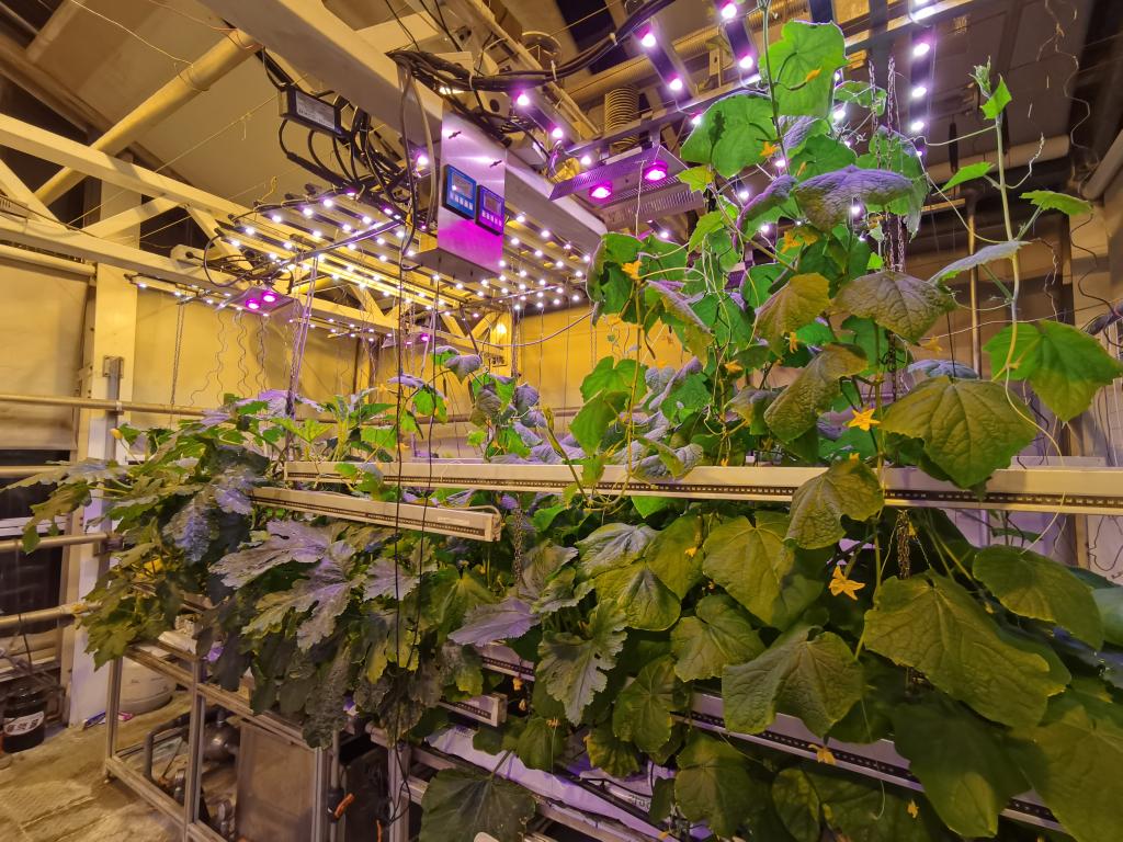 菜架下一层,黄的花儿把翠绿的叶撩得缤纷迷眼、生机盎然。那边,空出了一块,原来菜已被采摘。“黄瓜已经种过两茬了,你看样子墨绿油亮,吃起来脆甜无比。现在,在长城站越冬的队员共有十来个人,大家基本可以隔天就能吃上一根黄瓜。”指着菜架毛茸茸的黄瓜花,胡淼医生的介绍很有几分自豪,他说蔬菜都已经是第5茬了。