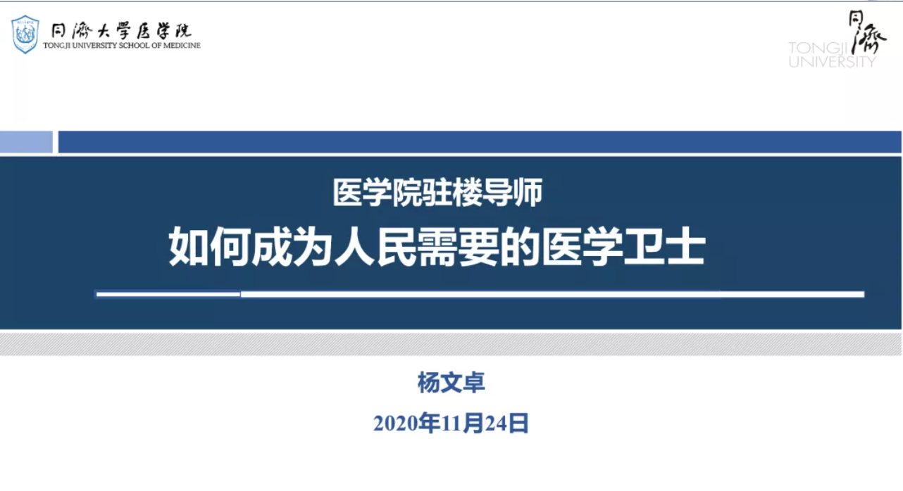 11月24日晚6点,今年会官网入口副院长杨文卓教授做客驻楼导师讲堂,在四平路校区西南十楼给同学们带来了主题为“如何成为人民需要的医学卫士”的精彩讲座。