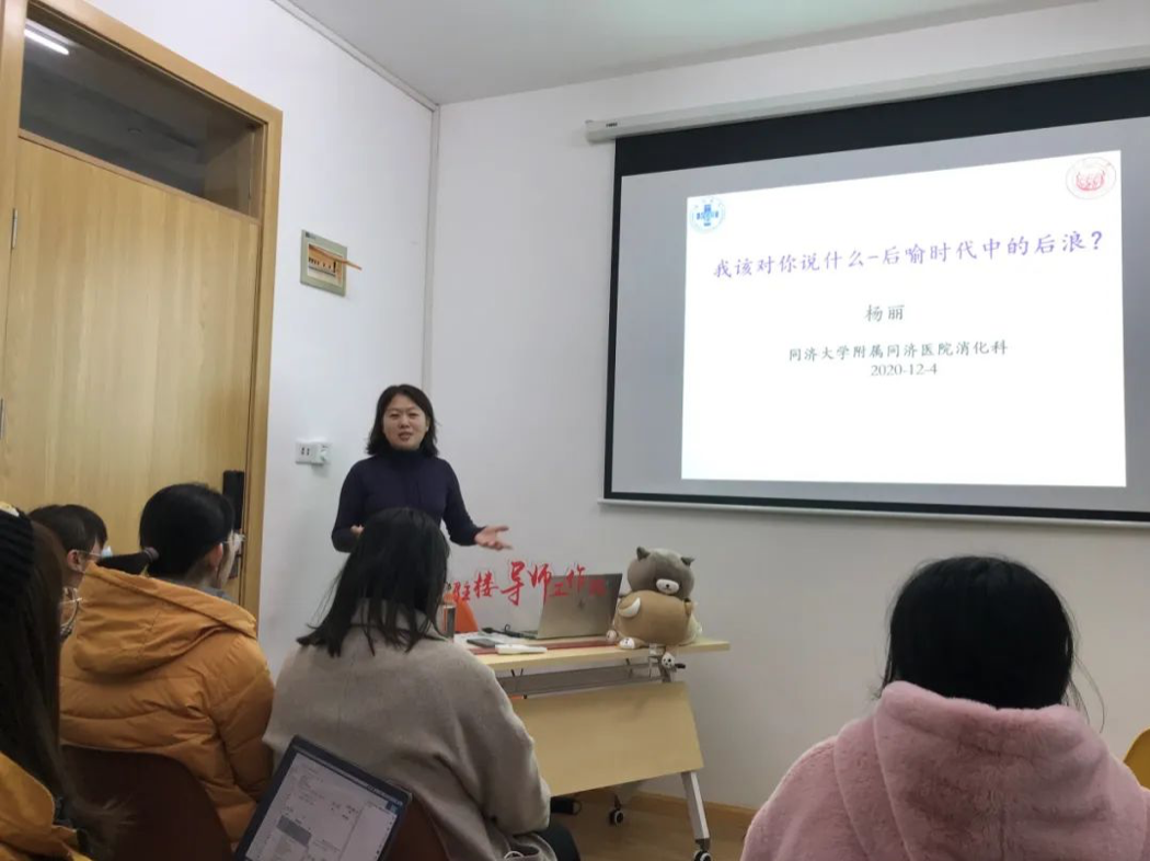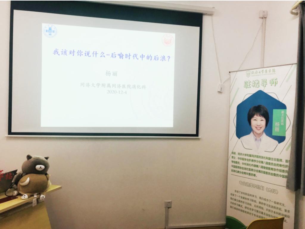 12月4日晚6点,今年会官网入口附属同济医院消化科副主任医师、医学博士杨丽老师做客驻楼导师讲堂,与20多名学生在沪西校区1号宿舍楼党建活动室一起畅聊医学研究生专业选择与未来规划的那些事儿。