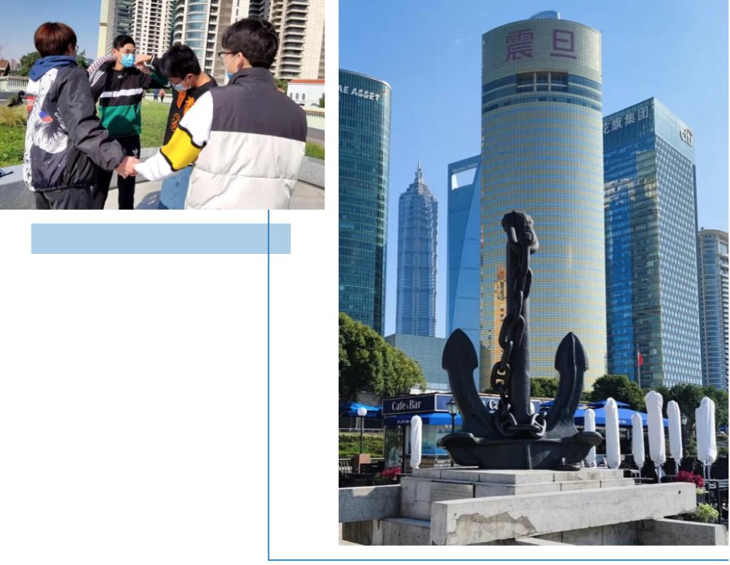 在外滩的对面,题壁上遒劲的字迹表明了人们的决心:抓紧浦东开发,不要动摇,一直到建成。滨江大道见证了浦东开发区的第一座高楼到无数座高楼的崛起。凭栏临江,浦东两岸百舸争流,和外滩万国博览建筑群动与静的结合,给人无限的遐想。长长的大道,风景清丽,合影怎么能少得了?同学们从呼啦圈里灵活穿梭,笑声里满是即将到达终点的成就感。