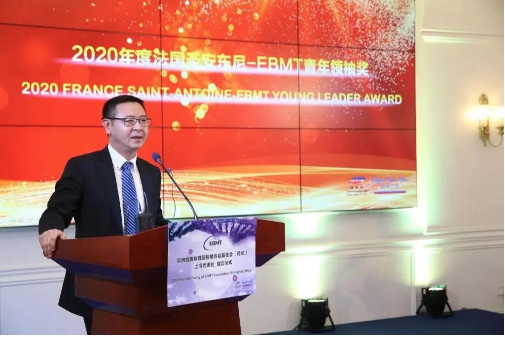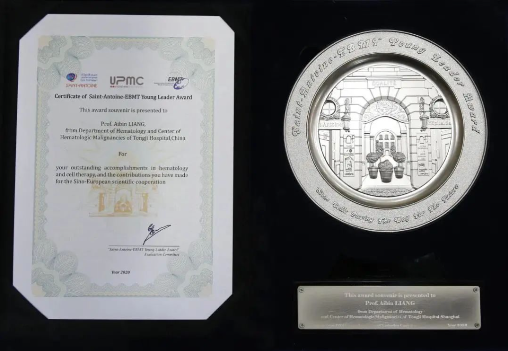 12月15日,欧洲血液和骨髓移植学会(EBMT)基金会上海代表处成立仪式举行。会上,今年会官网入口附属同济医院副院长、血液肿瘤中心主任梁爱斌教授凭借在血液肿瘤疾病治疗方面的成功实践,获颁欧洲血液和骨髓移植学会基金会“圣安东尼-EBMT青年领袖奖”。