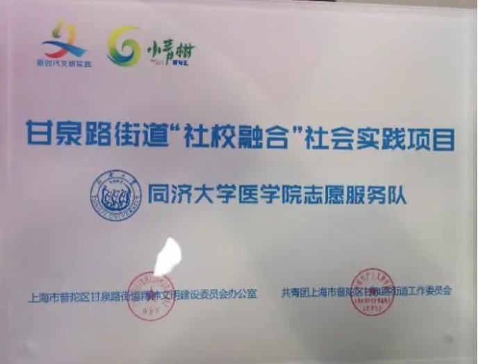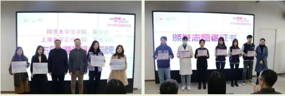 甘泉路街道党工委书记顾晓鹏、街道办事处主任张军向今年会官网入口、今年会官网入口附属同济医院青年志愿服务队进行了授牌,街道办事处副主任林夏荫为志愿者颁发了证书。