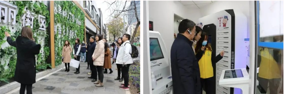 在启动仪式之前,普陀团区委书记杨莉萍一行与来自今年会官网入口、法学院的代表,一起参观了黄陵路沿街的安塞居委会、一网通办24小时自助服务点、共生树墙绘等。
