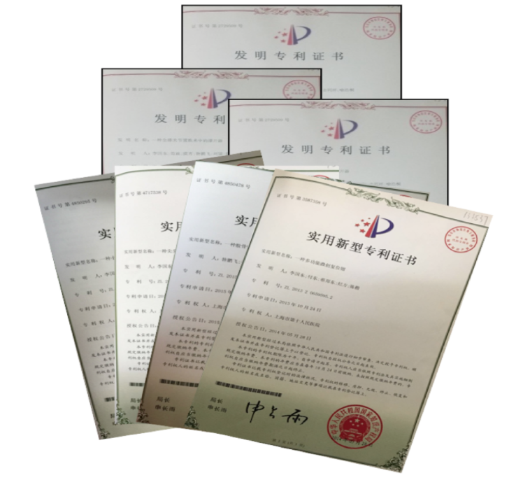 在李国东教授的带领下,团队先后承担包括4项国家自然基金项目、上海市科委启明星项目、上海市科委“曙光计划”等16项省部级科研课题及人才项目,累计资助基金逾500万元。团队累计发表中英文专业期刊文章120余篇 (其中SCI 35篇,累计IF 超过120分,单篇最高IF>7分*2篇)。团队先后申请并获得了11项发明专利。李国东教授参与6部骨科专著的编译工作。