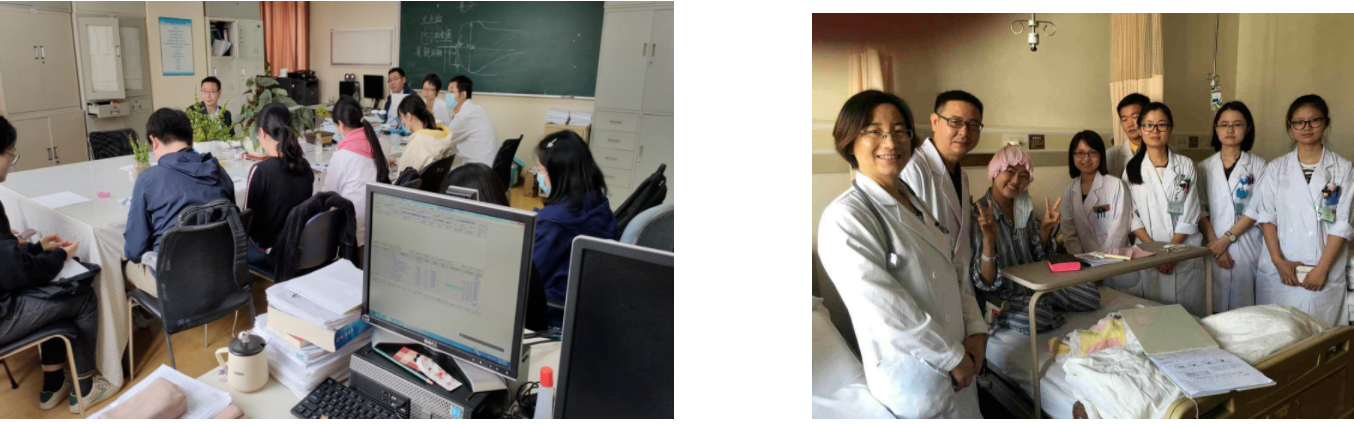 医学生自身的品德素质则关系着人民的生命健康以及生活质量,同济血液团队尤其重视思政课程的强化推进。习近平总书记在全国高校思想政治工作座谈会上指出:做好高校思想政治工作,要利用好课堂教学这个渠道,思想政治课要坚持在改进中加强,其他各门课要守好一段渠,种好责任田,使各类课程与思想政治理论课同向同行,形成协同效应。梁爱斌教授是位优秀的共产党员,他领导的导学团队,坚持立德树人根本任务,落实导师是研究生培养第一责任人的要求,把思想政治教育摆在第一位。团队在校研究生参与各种社会实践和志愿服务活动,在泰禾奖学金评选活动中获得“笃志践行奖”。毕业的研究生现已成为多家医院的科室的中坚力量,其中毕业生修冰副主任医师也已成长为副教授,也开始了教书育人,并获得多项教学荣誉。毕业生修冰、陆惠娜、李冰积极投身新冠抗疫,为社会贡献了自己的一分力量。