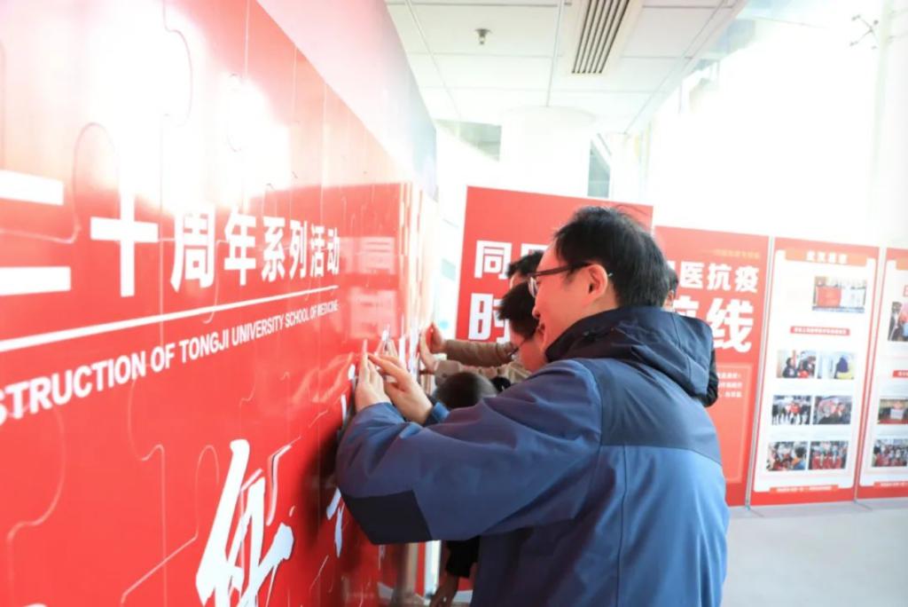 在场嘉宾依次将手中的拼图镶嵌进展板内,有一分热,发一分光,一片片拼图象征着每个人贡献出的一份抗疫力量,随着主题展板的完成,展览正式揭幕。