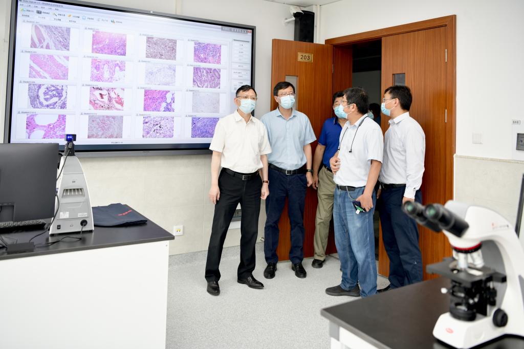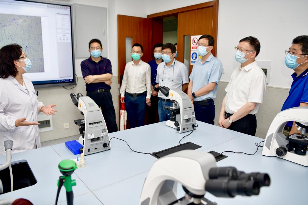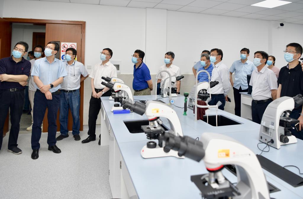 会前,校领导一行来到已经修葺一新的第二教学楼,察看了智慧教室、PBL讨论教室和实验教学中心,深入P2实验室、病原学实验室、细胞生物学和生物化学实验室、形态学实验室了解开学准备情况,要求相关负责人加强实验室管理,确保实验室安全;到新学期即将开放的食堂一楼,查看了食堂后厨、操作间和留样间,叮嘱后勤负责人加强操作管理,确保食品安全;到生乐公寓,查看了改造后的学生宿舍,对宿舍的管理提出了明确要求。