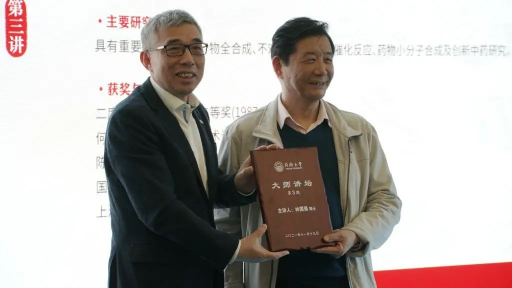 林国强院士以传统中医药为切入点,结合中医药治疗在抗击新冠肺炎疫情中发挥的重要作用,讲述了从中药材的药效物质基础鉴定与合成,到生物催化反应以及手性药物研发等方面的科研探索与实践,用生动详实的案例诠释了中医药经典配方与现代科技手段交叉融合的创新研究,强调 “守正创新、传承发展”,用现代科学解读中医药学原理,走中西医结合的道路。