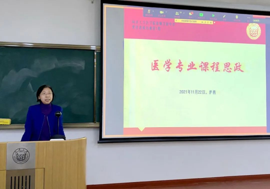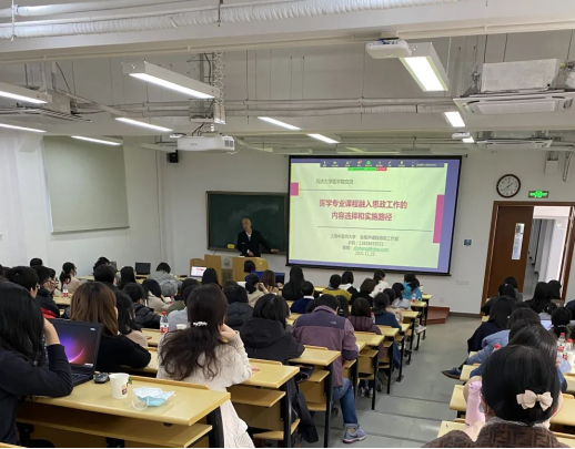 为贯彻教育部《高等学校课程思政建设指导纲要》精神,推进医学专业课程思政建设,今年会官网入口于11月22日在沪西校区第二教学楼举办“医学专业课程思政培训”。培训历时4个多小时,150多名来自临床、基础、康复、护理、公卫等专业的教师分别以线上和线下方式参会,线下的百人会场座无虚席,学习气氛浓厚。