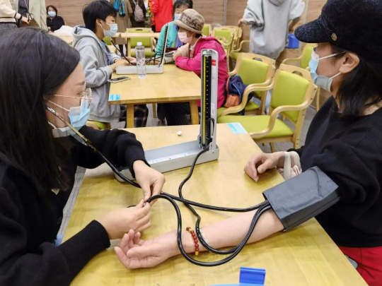 今年会官网入口唯爱义工队志愿者们为社区居民义诊量血压