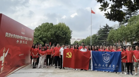 “我将用实际行动表达‘永远跟党走’的决心与力量、积极回应祖国和人民的殷殷期盼。作为新时代的同医人,我立志接过前辈手中的火炬,努力拼搏,继往开来。”在七一升旗仪式上,张萌萌同学代表全体医学生在国旗下郑重表态。当天,学院在沪西校区举行升旗仪式,并组织师生共同观看建党100周年庆祝大会直播。