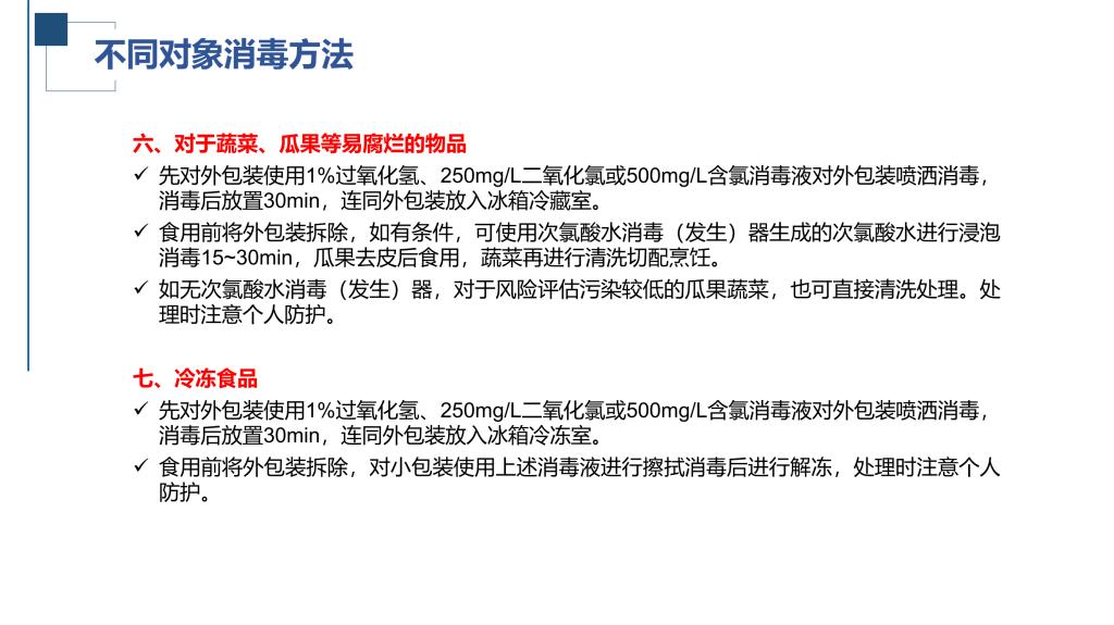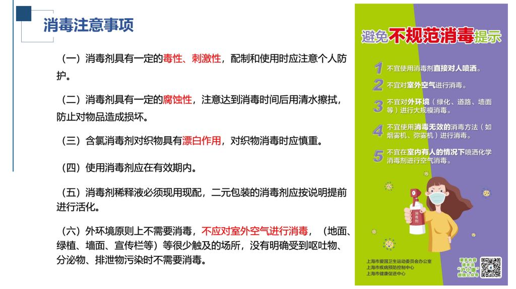 陈海滨详细介绍了如何正确开展预防性消毒、疫源地消毒及终末消毒等,并重点针对预防性消毒讲解了不同物品、不同场所对应的消毒方法,包括消毒剂的配比、开展消毒的步骤及注意事项等。他特别提示,校外物品进校,外包装消杀必须使用消毒液做到每个面喷洒消毒,表面均匀潮湿,并静置一定时间。考虑新冠病毒在硬纸板上存活时间约为24小时,对于非应急使用的物品,建议消杀后隔天取。