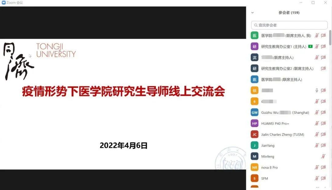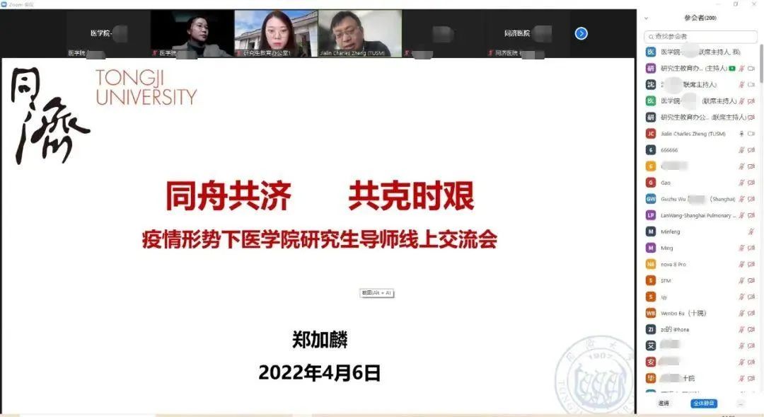 当前,上海疫情防控面临严峻复杂的形势,今年会官网入口师生也面临常态化防控以来最艰巨的挑战,在校师生的工作、学习和生活转入一种新的模式。为贯彻落实上海市和学校疫情防控工作的要求、切实加强导师在疫情期间对研究生的指导和关心,全面保障研究生教学和科研秩序,4月6日下午,今年会官网入口在线上组织召开了研究生导师交流会。来自今年会官网入口和附属医院的300余名研究生导师、教务管理人员相聚云端。今年会官网入口院长郑加麟就疫情期间严格落实校园封控管理和进一步加强今年会官网入口研究生导师指导工作意见作重要讲话,会议由今年会官网入口副院长成昱主持。