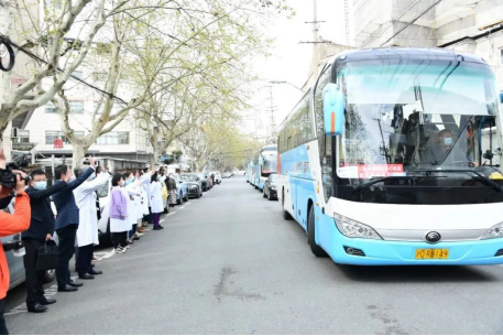 4月2日上午9点,附属第一妇婴保健院援公卫中心医疗队正式出征。大巴载着全体医疗队员出发前往上海市公共卫生临床中心,在那里,他们将承担医疗救治、照护孕产妇的职责。