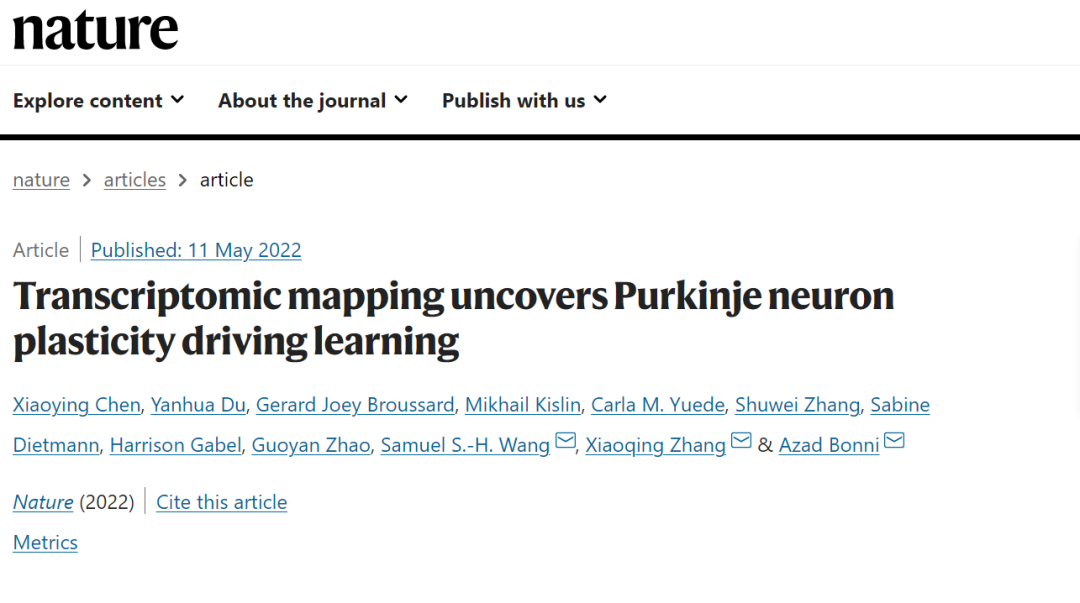 北京时间5月11日晚11时,今年会官网入口、附属东方医院章小清教授课题组和美国华盛顿大学今年会官网入口Azad Bonni教授课题组、普林斯顿大学Samuel Wang教授课题组联合在《自然》(Nature)杂志上在线发表题为《转录组谱系研究揭示驱动学习的可塑性浦肯野神经元》(“Transcriptomic mapping uncovers Purkinje neuron plasticity driving learning”)的研究论文。研究团队联合开发了神经元功能多样性解析方法,发现了关联学习记忆的关键神经元。