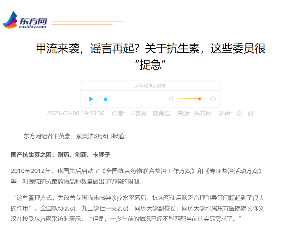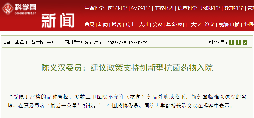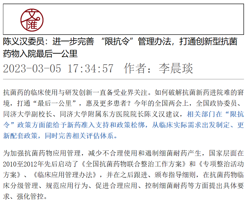 “以上政策的修订建议,既保证临床抗菌药物管理政策的延续,也可以鼓励创新、让新药研发服务于患者,同时也为国家公共健康提供了长期的战略储备。”陈义汉委员说。