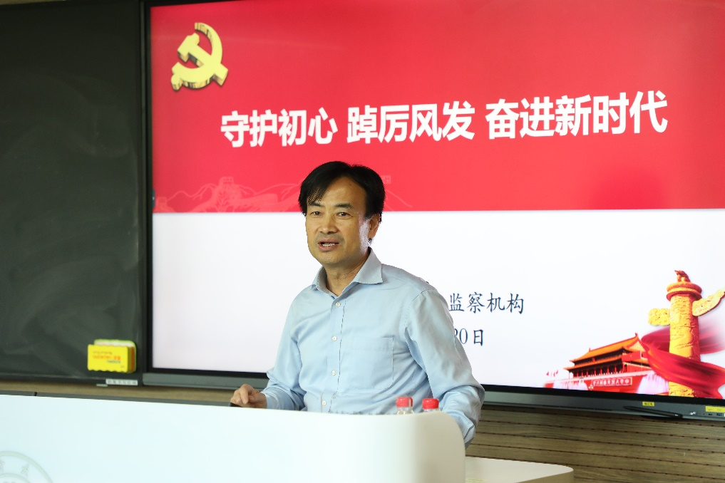 杨正宏首先明晰了纪检监察机构的定义,对纪委主要任务、监察职责、监察对象等进行了全面梳理,介绍了学校纪检监察的基本情况及工作职责。随后,他剖析了当前的党风廉政建设形势,警示大家反腐斗争仍任重道远。他引用《中国共产党章程》《中国共产党党内监督条例》等文件,强调党内监督没有禁区、没有例外,要做到有权必有责,有责要担当,用权受监督,失责必追究,并结合实际案例提示在重点领域和关键环节存在的风险点。