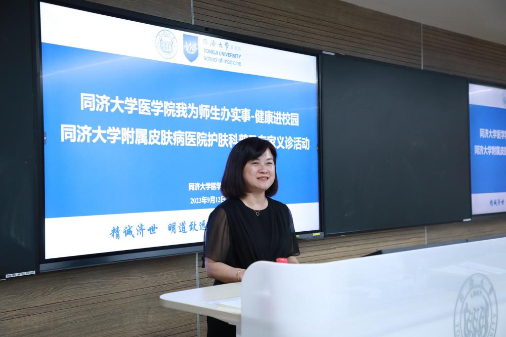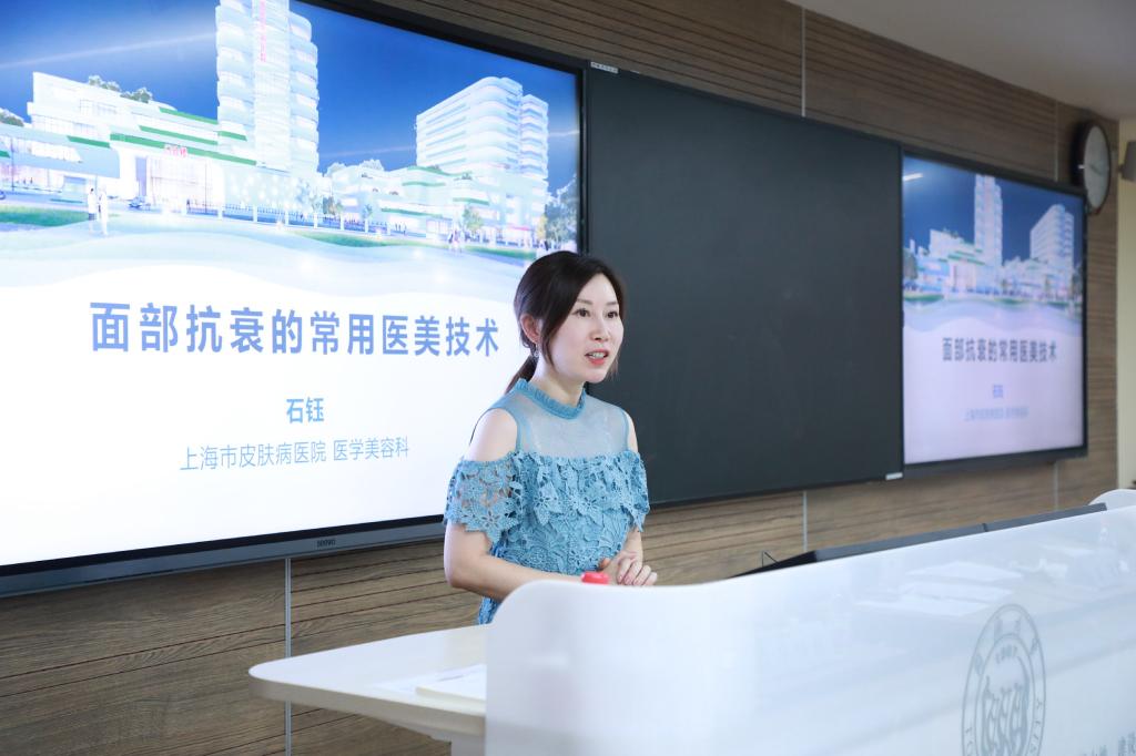 科普讲座由附属皮肤病医院医学美容科石钰做了题为皮肤抗衰老光电治疗进展的报告,主要从衰老的皮肤表现、面部抗衰的临床案例分析、前沿光电治疗技术及日常皮肤护理等方面全面详细地介绍了皮肤保健科普知识。