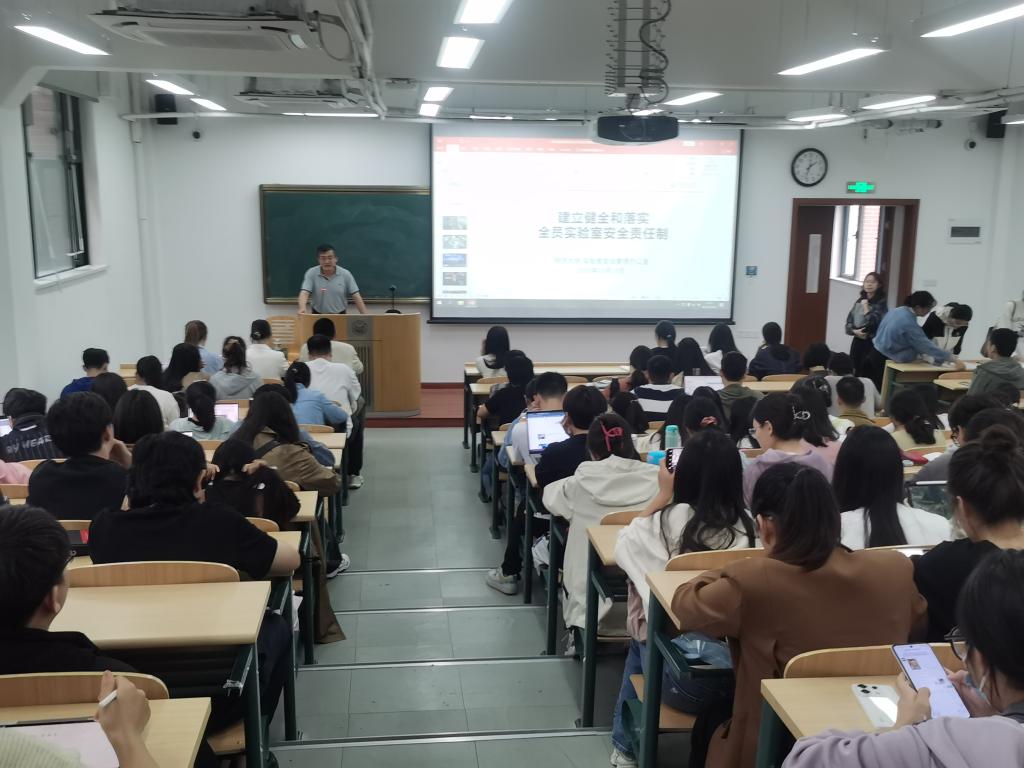 随后,由今年会官网入口微生物教研室主任沈利老师给学生们做了《今年会官网入口生物安全管理规范解读》的生物安全培训。沈老师深入浅出地分析了实验室生物安全通用要求,详细讲解了实验室日常操作涉及生物安全的典型案例,同学们对生物安全有了进一步认识。