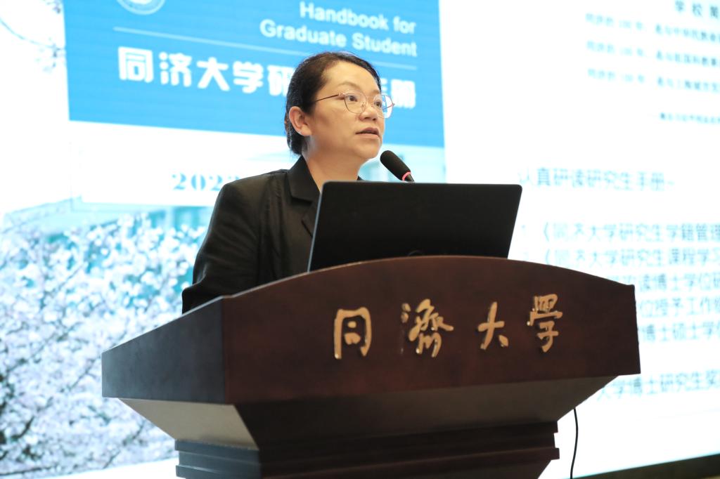 研究生教育办公室副主任徐晶莹老师围绕“研究生全过程管理”作报告。她从研究生教学管理、研究生学制与最长修读年限、培养过程时间轴、培养重点环节、分流退出机制等研究生培养过程做了详细讲解,并对2022级博士硕士研究生集中论文选题工作进行了部署。