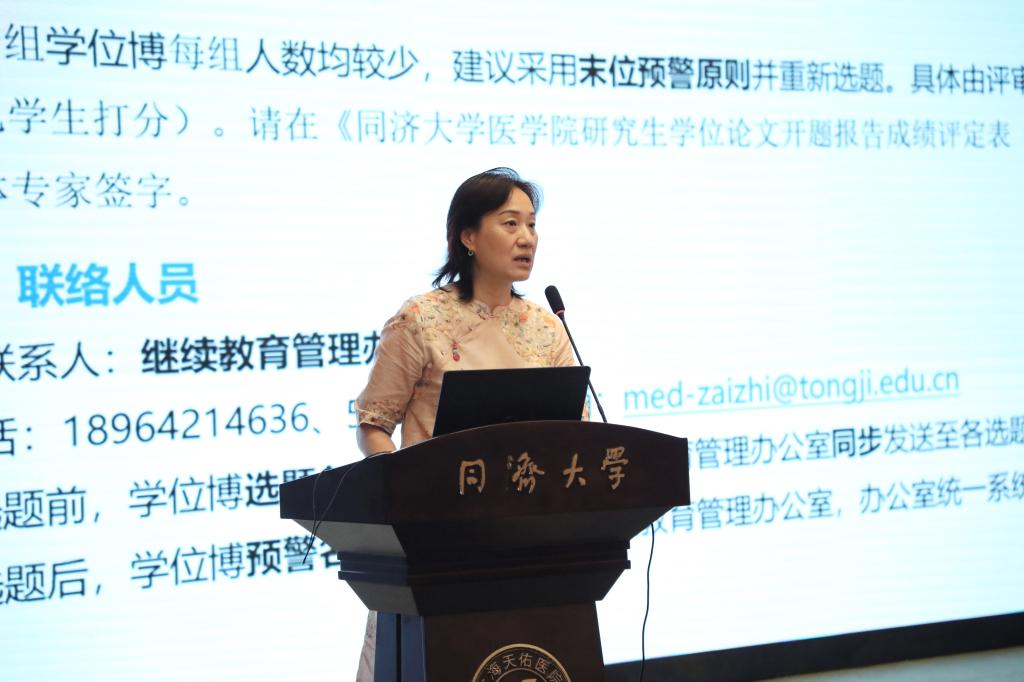 继续教育管理办公室主任李萍老师介绍了本次学位博集中论文选题工作和本年度学位论文论文质量复核工作的具体安排。并概述了今年会官网入口学位博培养宗旨和12年成效,重点解析学位博全过程管理,通过奖惩结合,同时以导师、院、系三方合力,共同促进培养质量的提升。