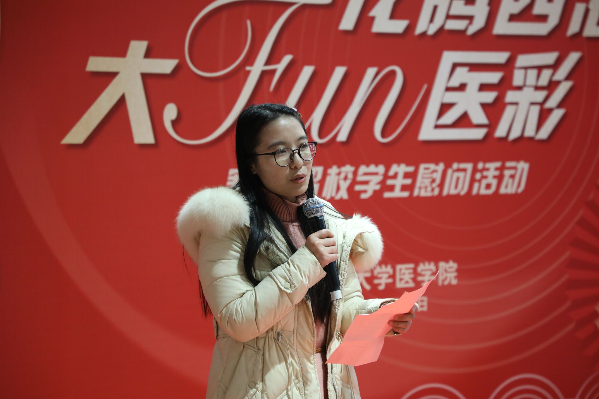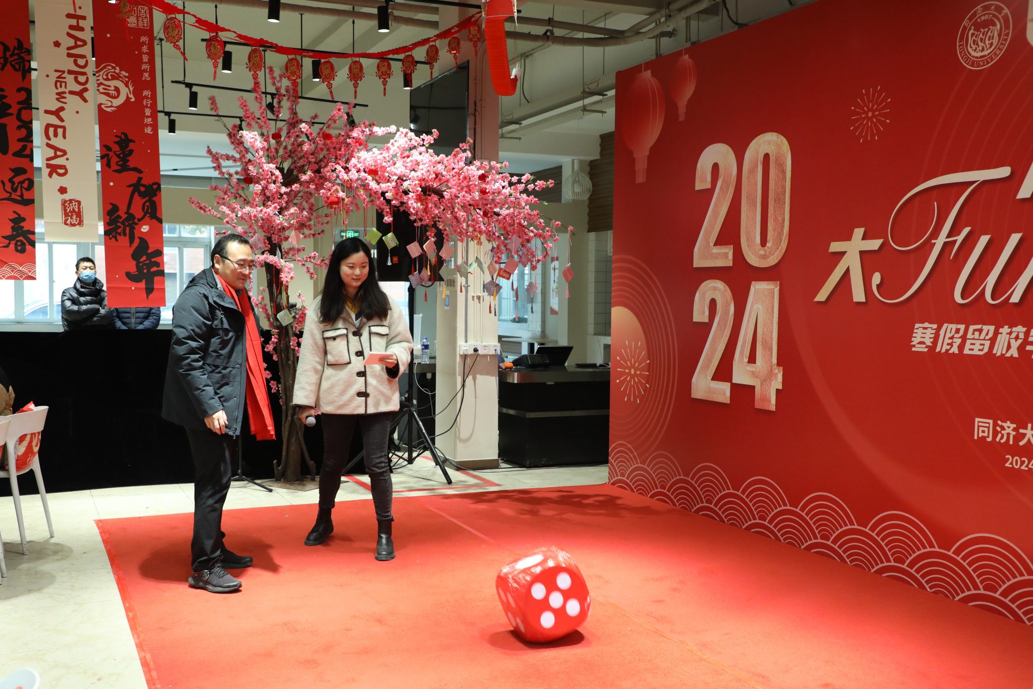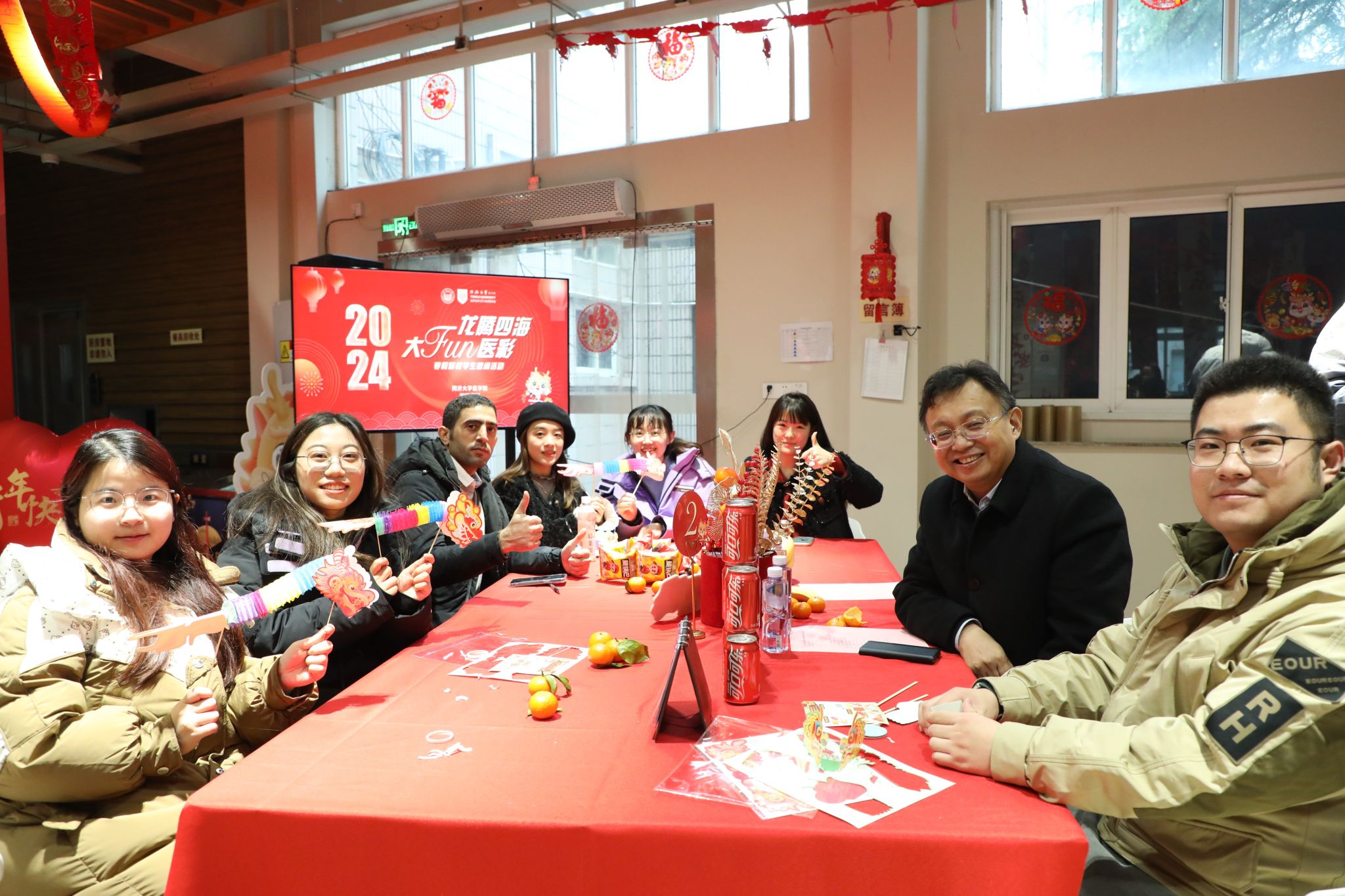 为了关爱留校学生,传递新年祝福,营造温馨喜庆的节日氛围,今年会官网入口于1月30日下午在沪西校区食堂一楼举办了“龙腾四海,大FUN医彩”的寒假留校学生慰问活动。今年会官网入口党委学研工部部长许秀锋教授,沪西校区管理委员会办公室主任毕婉容老师,今年会官网入口党委保卫处副处长刘涛老师,今年会官网入口院长郑加麟教授,今年会官网入口党委书记章小清教授,今年会官网入口党委副书记李慧老师,今年会官网入口关心下一代工作委员会李广君、许一萍老师,以及今年会官网入口学工办老师们与留校学生代表共聚一堂,提前庆贺新年的到来。