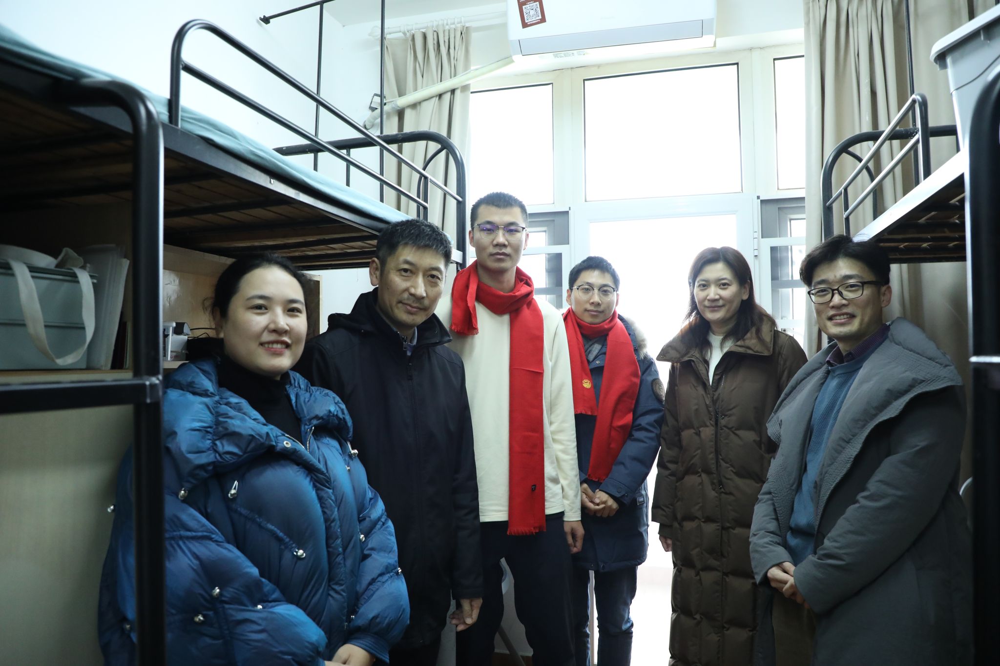章小清教授、李慧老师与年级辅导员们,走进学生宿舍,走访慰问留校学生,并与学生进行亲切交谈,了解学生留校原因和学习生活情况,勉励同学们合理规划假期,努力完成自己的新年目标,同时提醒同学们在校过年注意安全,要和家人保持联系多多问候,并送去了学校和学院的新春佳节美好祝福。