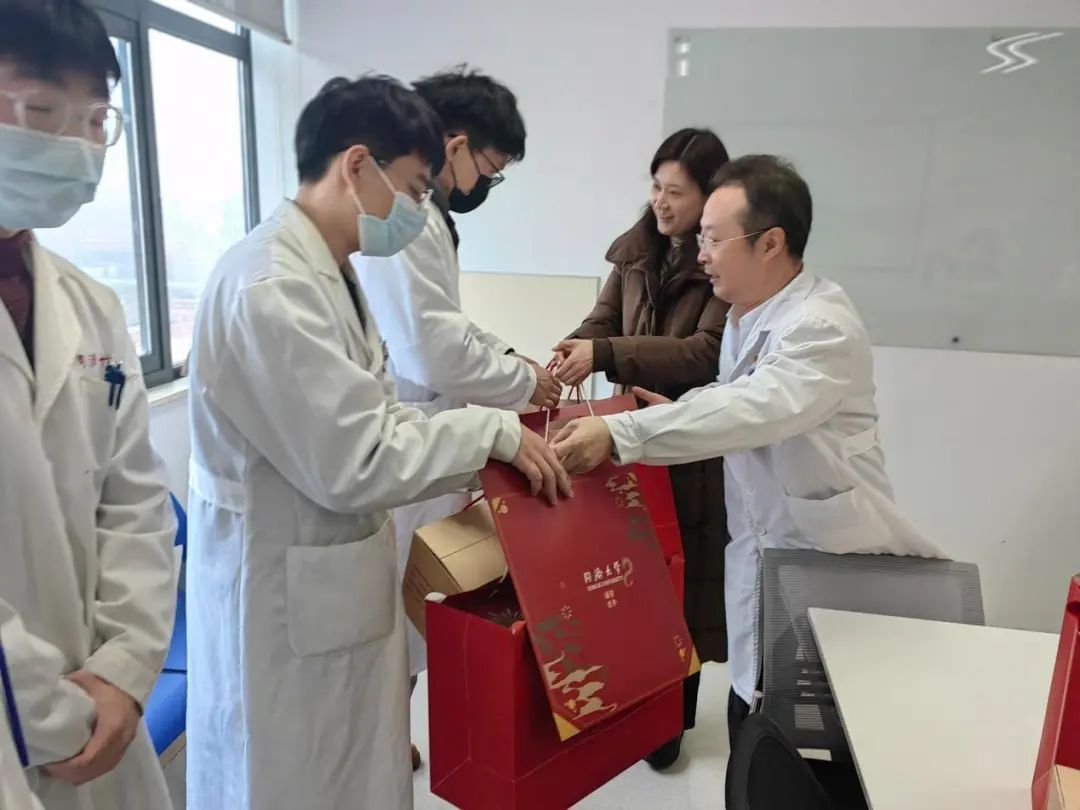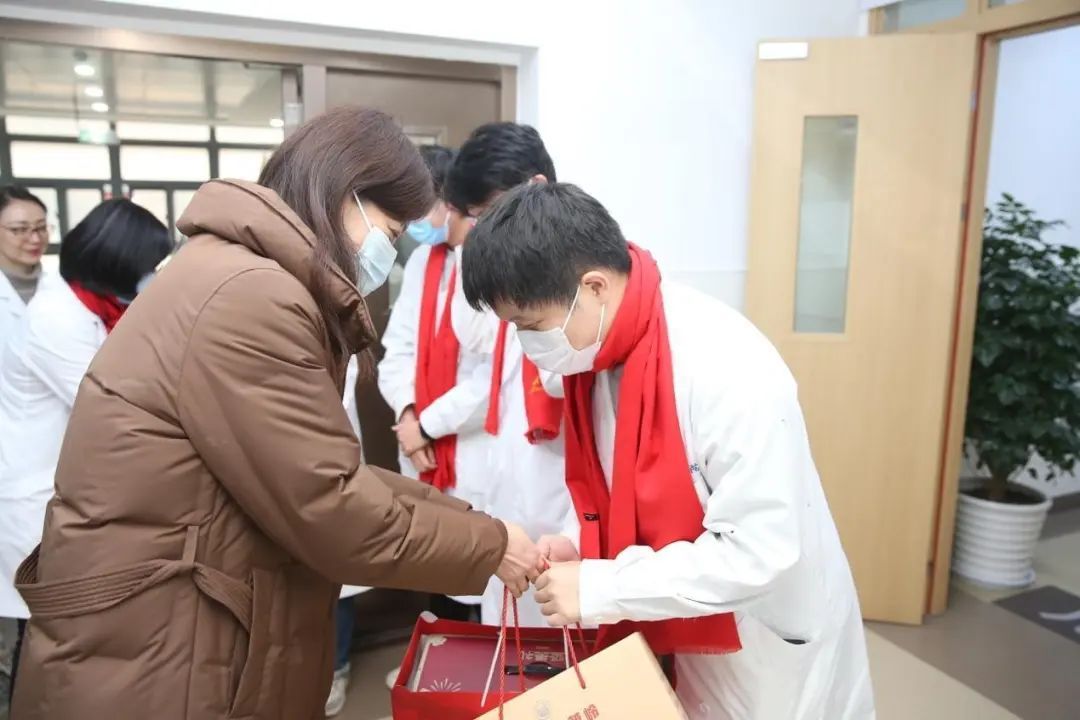 在慰问活动前,李慧老师和辅导员们一行前往附属上海市肺科医院、附属第十人民医院、附属同济医院慰问留校留院学生,并与学生进行座谈,详细询问了大家的工作与学习情况,并表示有困难和问题可以随时联系学院,学院一定会努力为大家做好保障,同时送去了学校和学院的新春佳节美好祝福。