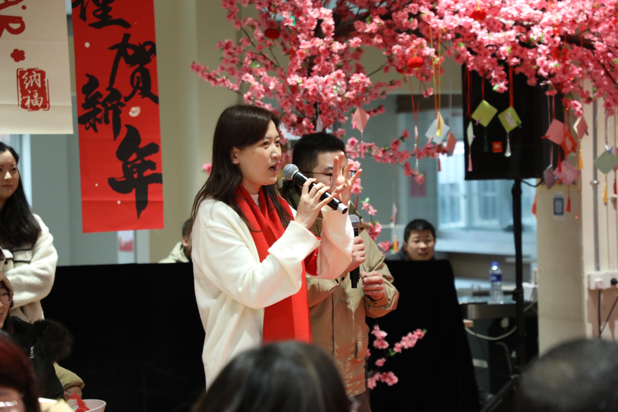 接下来,在场师生开展了“同心送福”、“缩略词挑战”、“你划我猜”、“成语大挑战”等一系列新春活动。师生共聚一堂,点燃了热闹欢快的新年气氛。