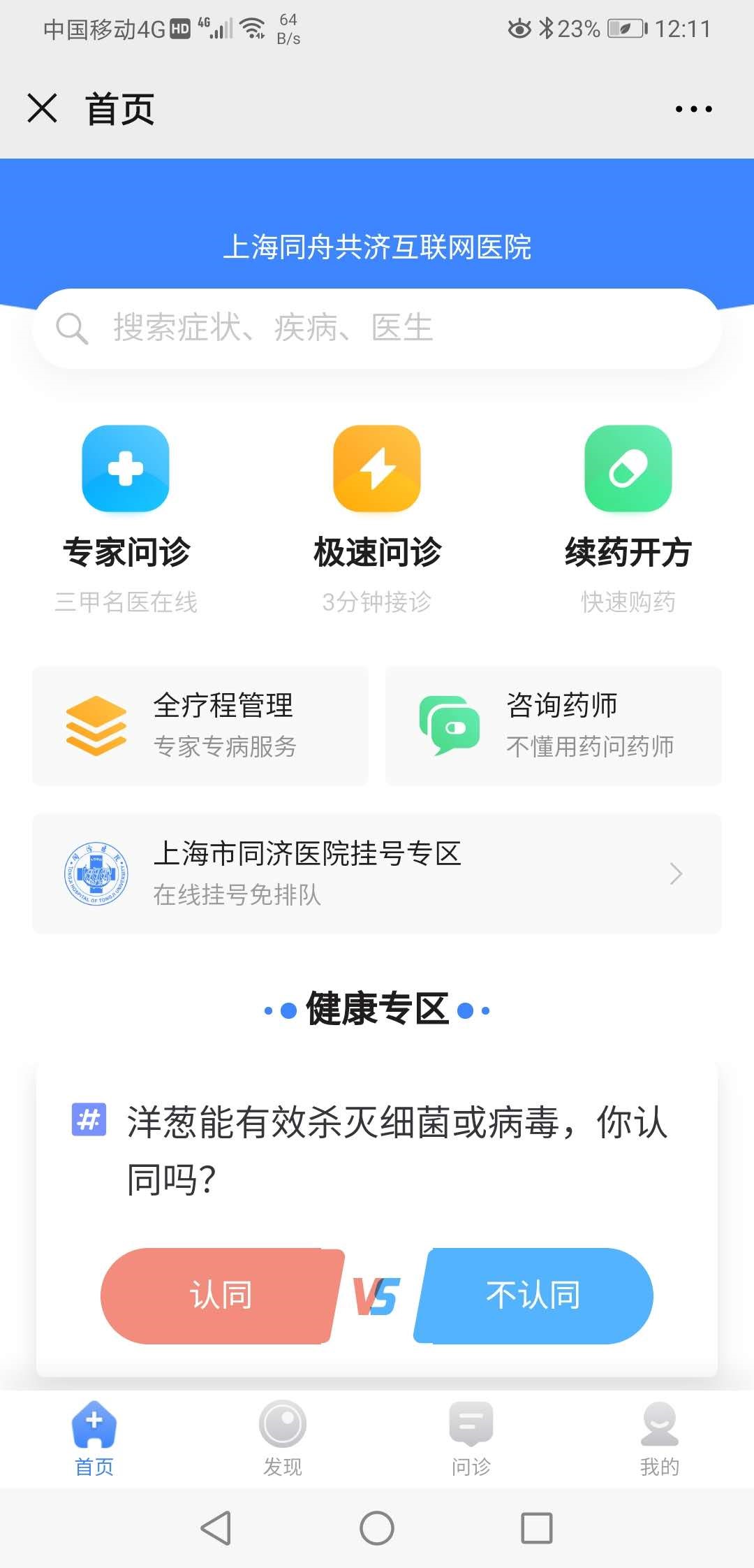 “同舟共济互联网医院”平台界面