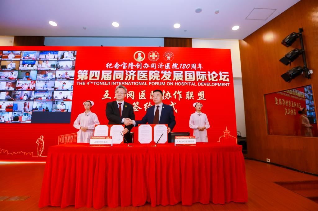 5月18日,在纪念宝隆创办同济医院120周年暨第四届同济医院发展管理国际论坛上,由同济医院牵头,正式发起组建“互联网医院协作联盟”。旨在发挥集团成员单位的群体优势,促进优质医疗资源可及性,提高医疗服务整体效率,共同推进“互联网+医联体”建设。论坛上,同济医院院长程黎明教授和联盟单位代表上海市金山区亭林医院院长孙继权先生现场签约,与此同时,线上46家医疗集团也共同签署协议书,并宣布“同舟共济互联网医院”正式上线。