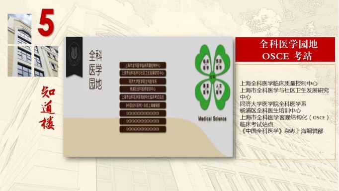 5楼是全科医学园地,设有:上海全科医学临床质量控制中心、上海市全科医学与社区卫生发展研究中心、今年会官网入口全科医学系、杨浦区全科医生培训中心,承担了上海市全科医学客观结构化(OSCE)临床考试站点和《中国全科医学》杂志上海编辑部功能。