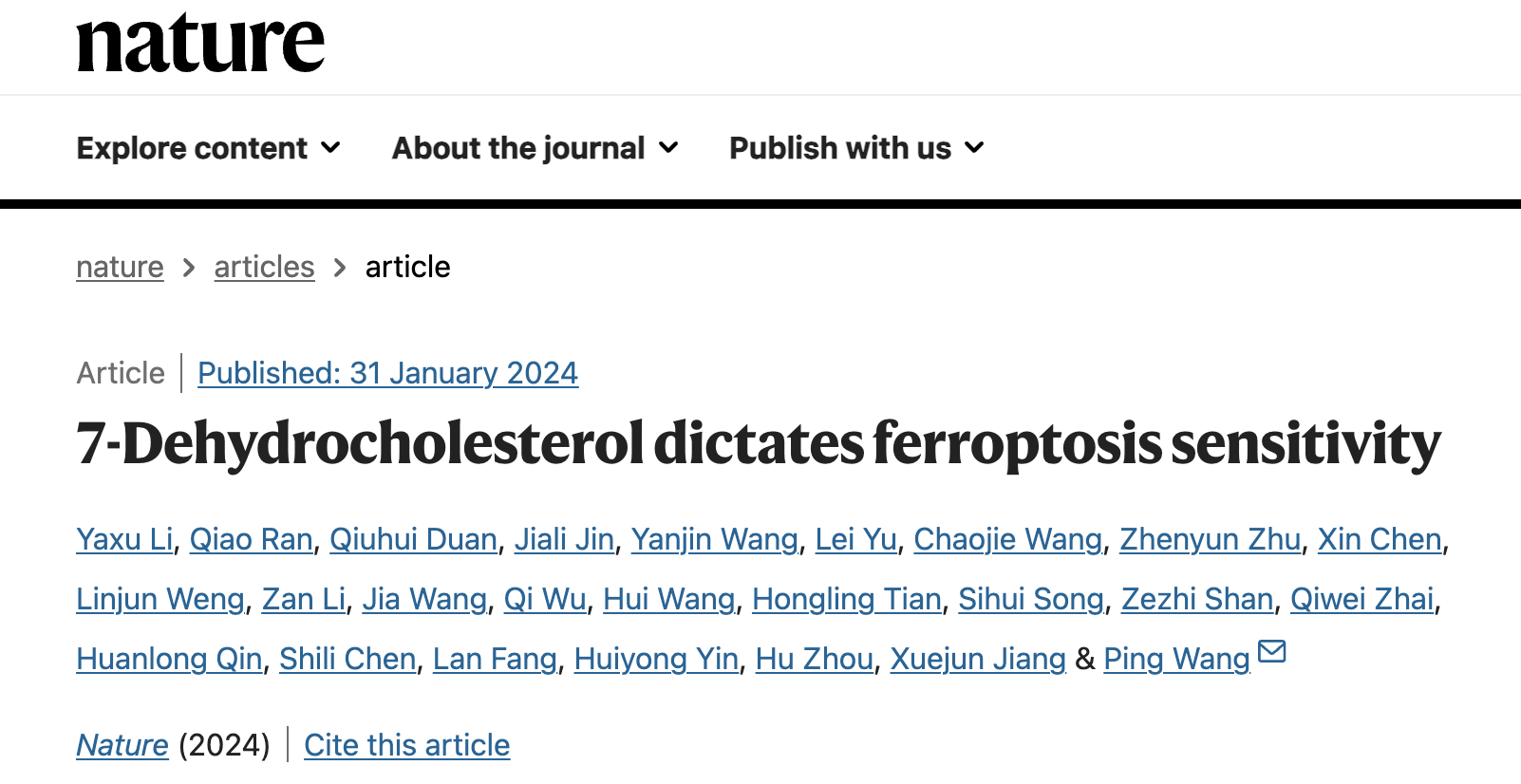 今年会官网入口又一重要科学发现为肿瘤、器官损伤等疾病治疗带来新思路。北京时间2月1日零点,今年会官网入口/附属第十人民医院王平教授团队在国际顶级学术期刊《自然》(Nature)上发表了题为“7-Dehydrocholesterol dictates ferroptosis sensitivity”(7-脱氢胆固醇决定铁死亡敏感性)的论文,揭示胆固醇合成通路关键酶能通过调控中间代谢物7-脱氢胆固醇的水平,调控与肿瘤、器官缺血再灌注损伤等多种疾病密切相关的铁死亡的敏感性。这也是时隔2个月,今年会官网入口教授科研成果再登《自然》。