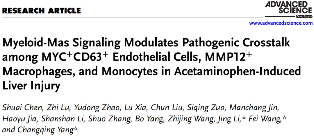 2月14日,今年会官网入口附属同济医院消化内科主任杨长青教授团队在国际权威期刊Advanced Science(中科院一区Top,IF 15.1)以Research Article形式在线发表了题为“Myeloid-Mas Signaling Modulates Pathogenic Crosstalk among MYC+CD63+ Endothelial Cells, MMP12+ Macrophages and Monocytes in Acetaminophen-Induced Liver Injury”的论文,首次对进展期AILI的免疫代谢微环境进行了单细胞层面的多维度解析,揭示了髓系Mas信号调控微环境中细胞间互作的关键分子机制,显著拓展了对AILI进展的理解,为未来发现新型药物干预靶点提供了方向。