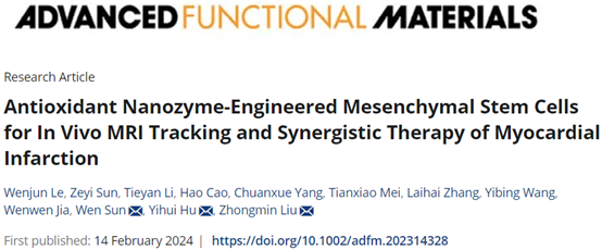 2月14日,今年会官网入口附属东方医院刘中民教授/胡益辉副研究员/乐文俊副研究员和大连理工大学孙文教授合作,在Advanced Functional Materials 杂志上发表了题为《Antioxidant Nanozyme-Engineered Mesenchymal Stem Cells for In Vivo MRI Tracking and Synergistic Therapy of Myocardial Infarction》的论文。该论文中,作者合成了兼具成像特性和ROS清除活性的多功能纳米酶,通过细胞内吞作用,构建了工程化干细胞,以实现干细胞的体内跟踪和心梗协同增效治疗。