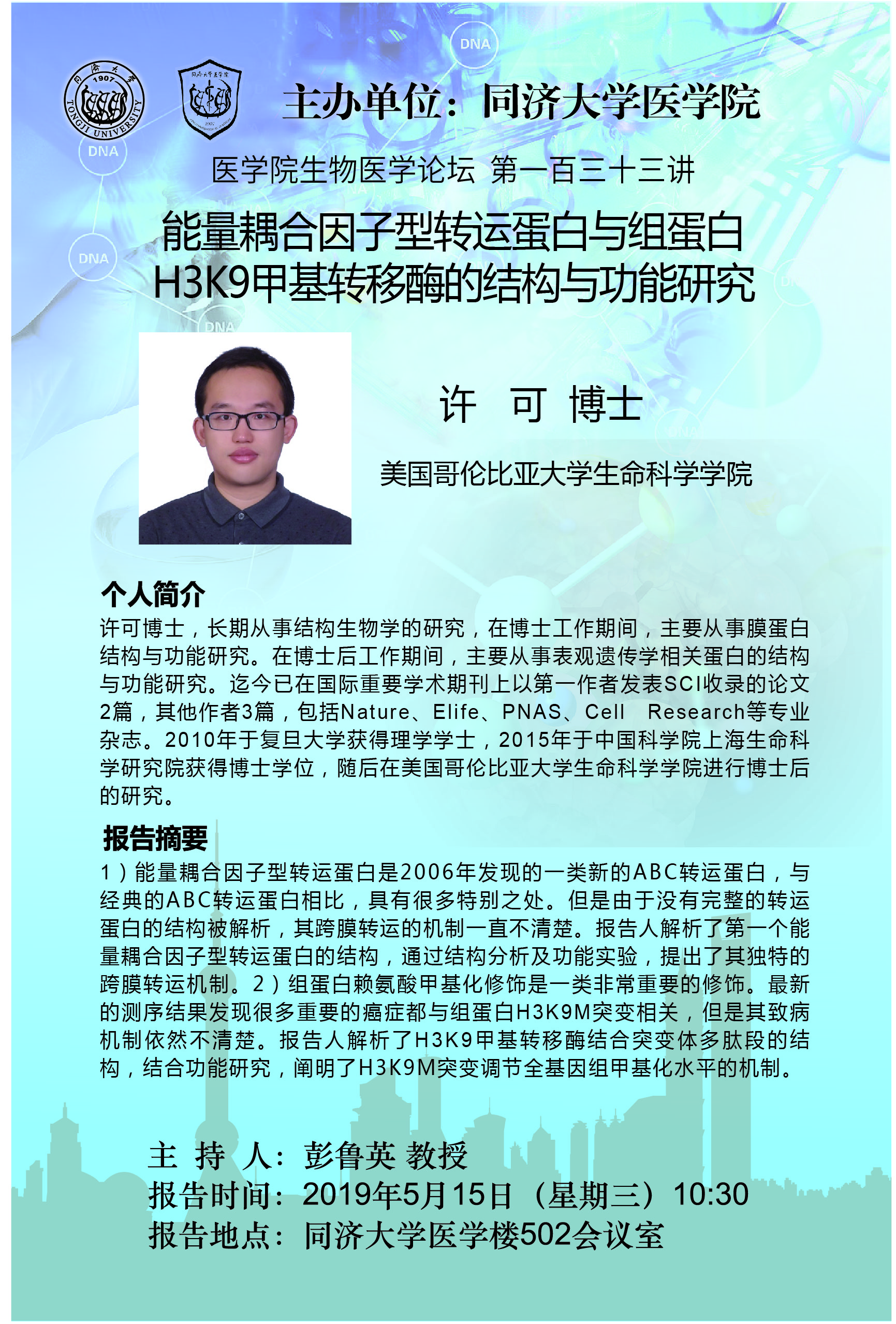 生物医学论坛第133讲:能量耦合因子型转运蛋白与组蛋白H3K9甲基转移酶的结构与功能研究